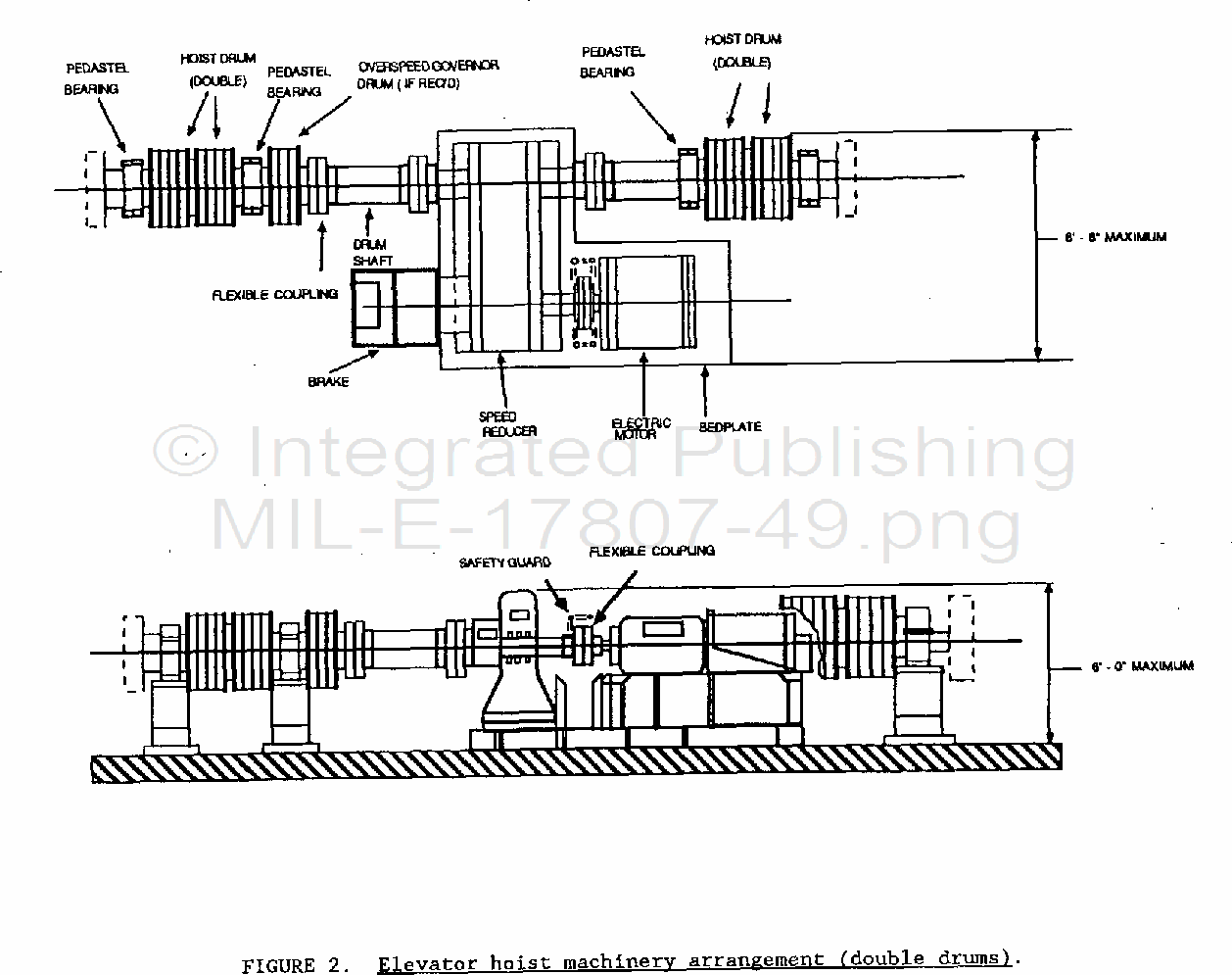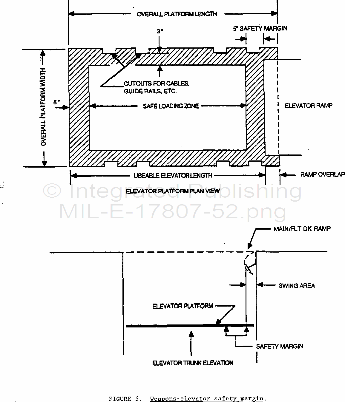 MIL-E-17807 Elevator, Weapon And Cargo, Electromechanical (Shipboard)This specification covers the general requirements for the design, construction, and testing of electromechanical hoist rope operated elevators used to handle bombs, weapons, other explosives, and general cargo for shipboard applications.